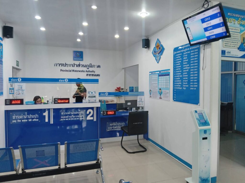 การประปาส่วนภูมิภาค มี 3 เคาร์เตอร์บริการ รองรับระบบคิวรวมพร้อมจอแสดงผลลำดับคิว แบบจอป้ายไฟหน้าช่องบริการ และจอ LED TV แสดงผลคิวรวมทั้งหมด อีกทั้งยังสามารถใส่ ตัวหนังสือวิ่งด้านล่างของจอภาพ และไฟล์ VDO รันต่อเนื่องทุกวัน เพื่อรองรับประชาชนมาทำธุรกรรมการใช้น้ำ ของการประปา ทางเรา J&P Q ยินดีเป็นอย่างยิ่ง